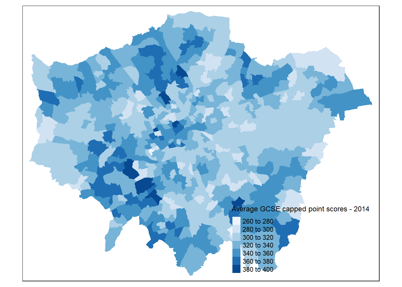 In the worked example, we will explore the factors that might affect the average exam scores of 16 year-old across London. GSCEs are the exams taken at the end of secondary education and here have been aggregated for all pupils at their home addresses across the City for Ward geographies.