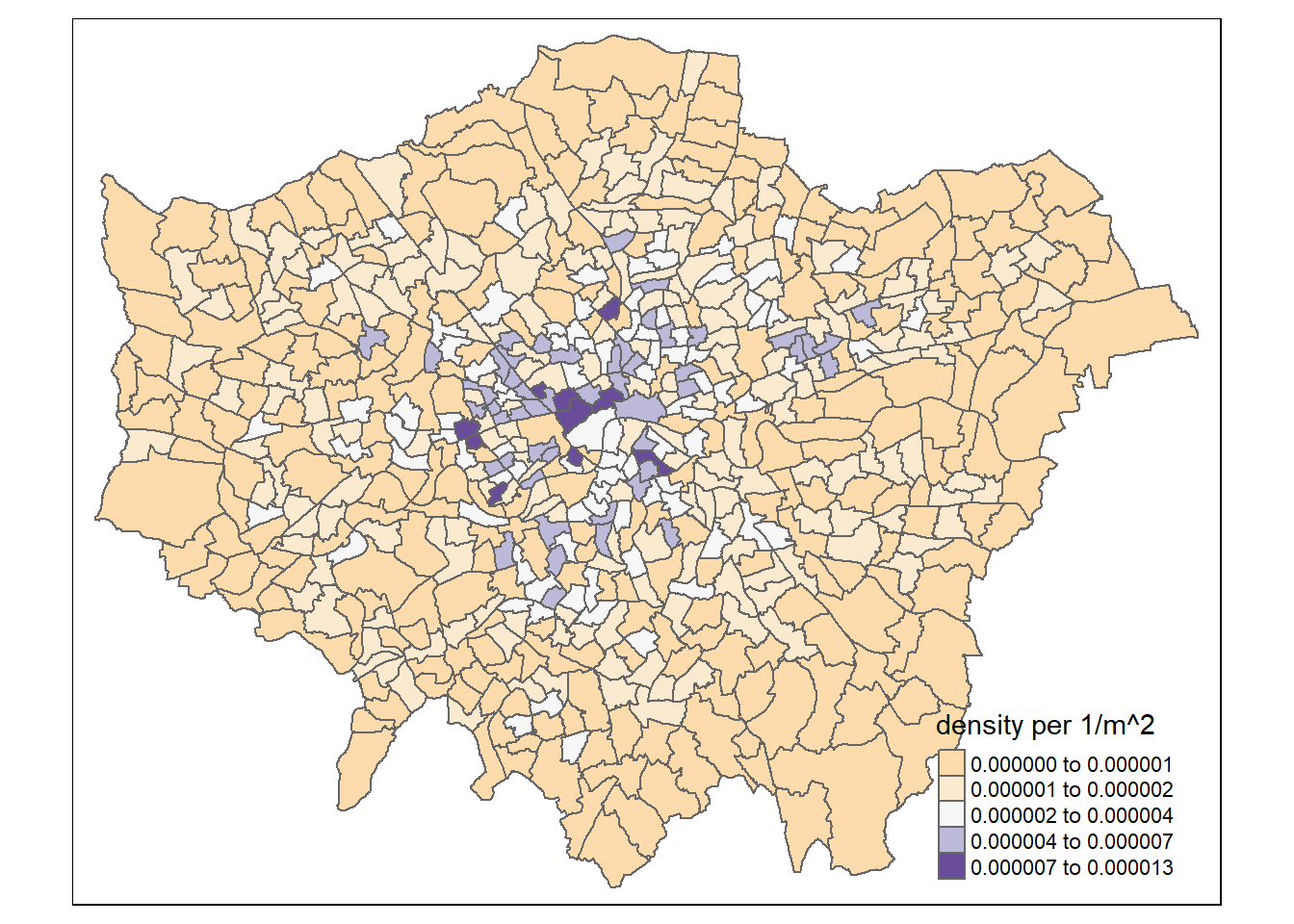 Are the values (in this case the density of pharmacies) similar (or dissimilar) across the wards of London.