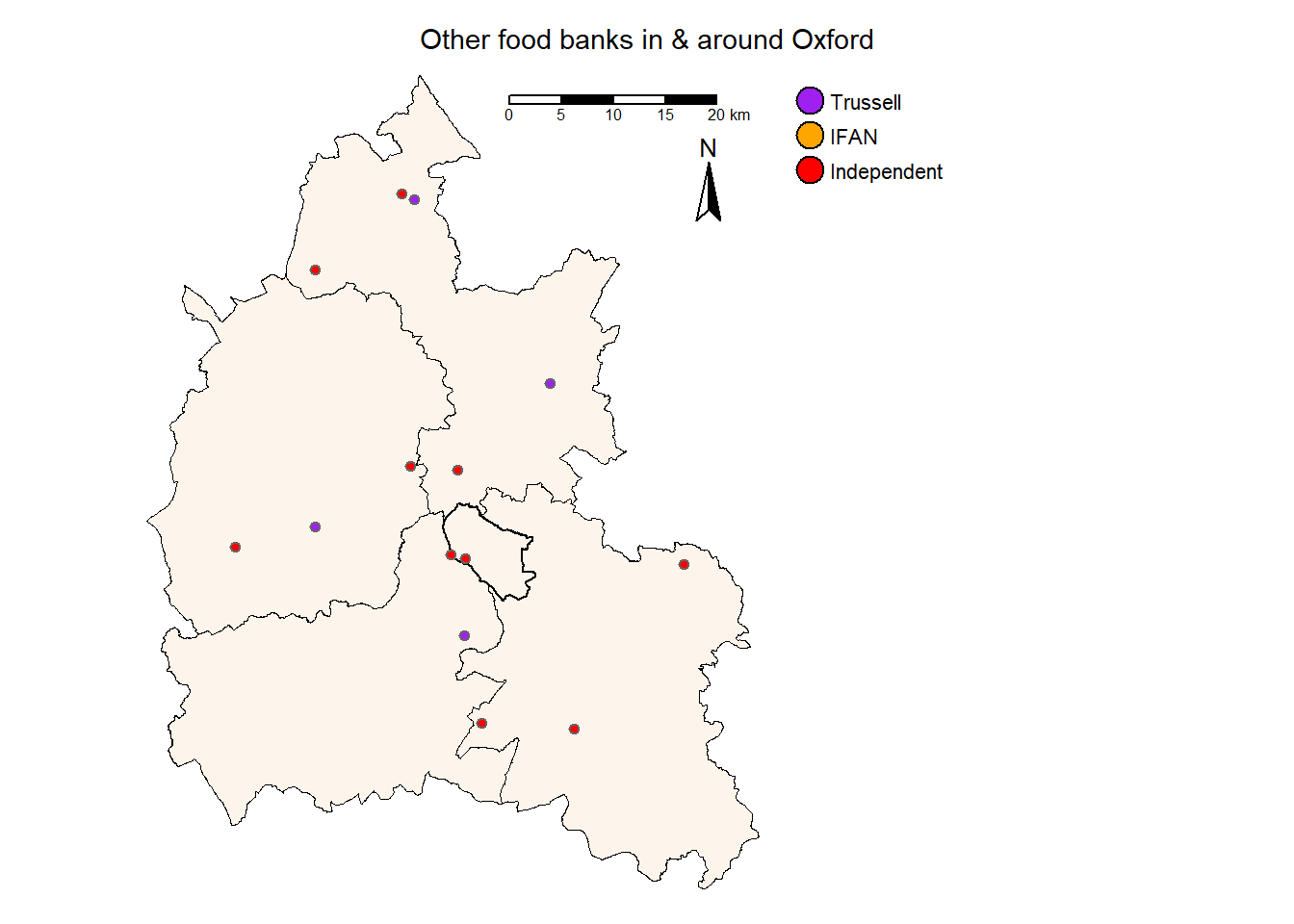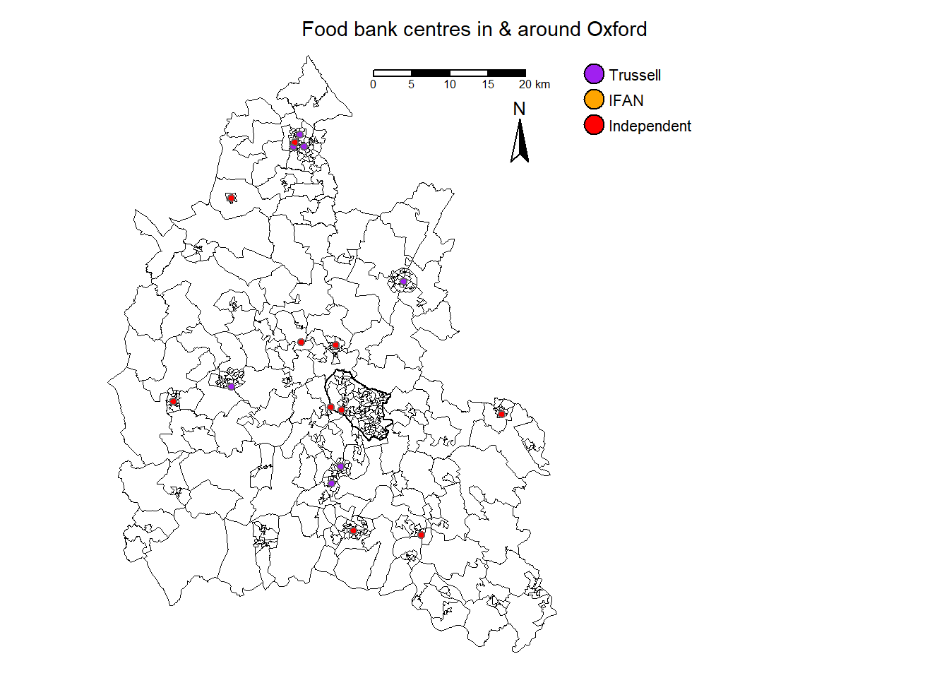 - Create maps/visualisations of locations of food banks (in the UK and Oxfordshire)