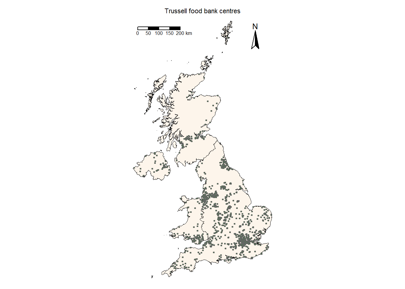 Next, we load the Trussell food bank data with addresses (this data was provided by Trussell in February 2023 so some centres may have closed in the last two years or new centres may have opened).